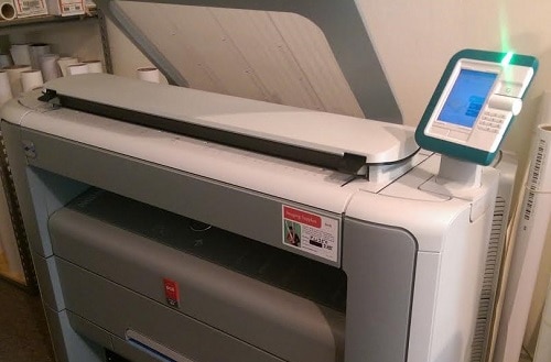Our large format scanner (the scanner we use is an Océ PlotWave 350) can help convert your hard copy color and Black & White documents into electronic PDF, TIFF or JPEG files. Whether you are scanning low resolution (200 DPI) engineering plans or a large poster at 600 DPI (Dots Per Inch), our large format scanner will impress you with its speed, quality, and competitive pricing.